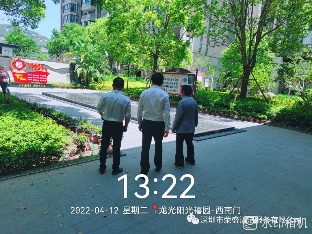 2022年4月12日,深圳市荣盛清洁服务有限公司董事长郑昌平和品质部一行来到了人杰地灵的汕头,对所在地区各项目进行客户交流和品质巡视。
